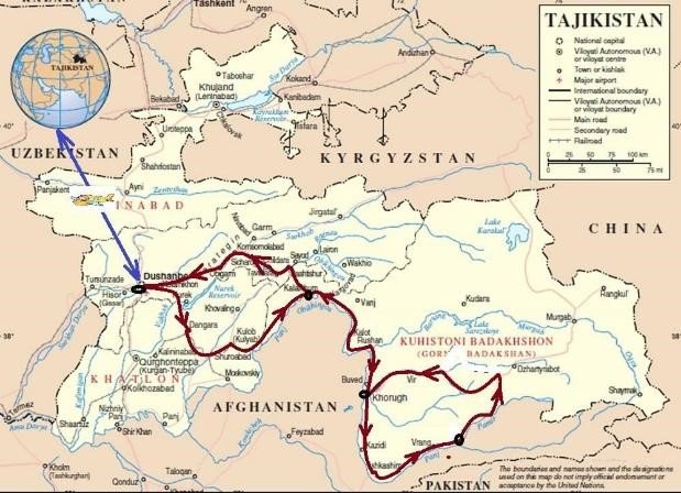 Dushanbe → Karategin Valley → Kalay Khumb → Khorog → Ishkashim → Wakhan Valley → Langar → Pamir Plateau → Dushanbe